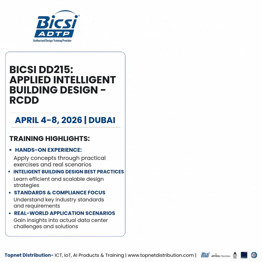We are proud to announce the successful completion of the BICSI DD215 – Applied Intelligent Building Design (RCDD) training, held from April 4–8, 2026, in Dubai.